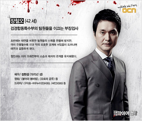 张哲吾介绍:42岁,绅士的背后隐藏着神秘面孔的首尔中部地方检察院检察官部长静仁的导师,也是检察官部长,虽然性格上很正义很绅士,但是有时候是很难将他的内心看透的神秘人物。掌握着解决围绕在泰延周围所有疑问的重要钥匙